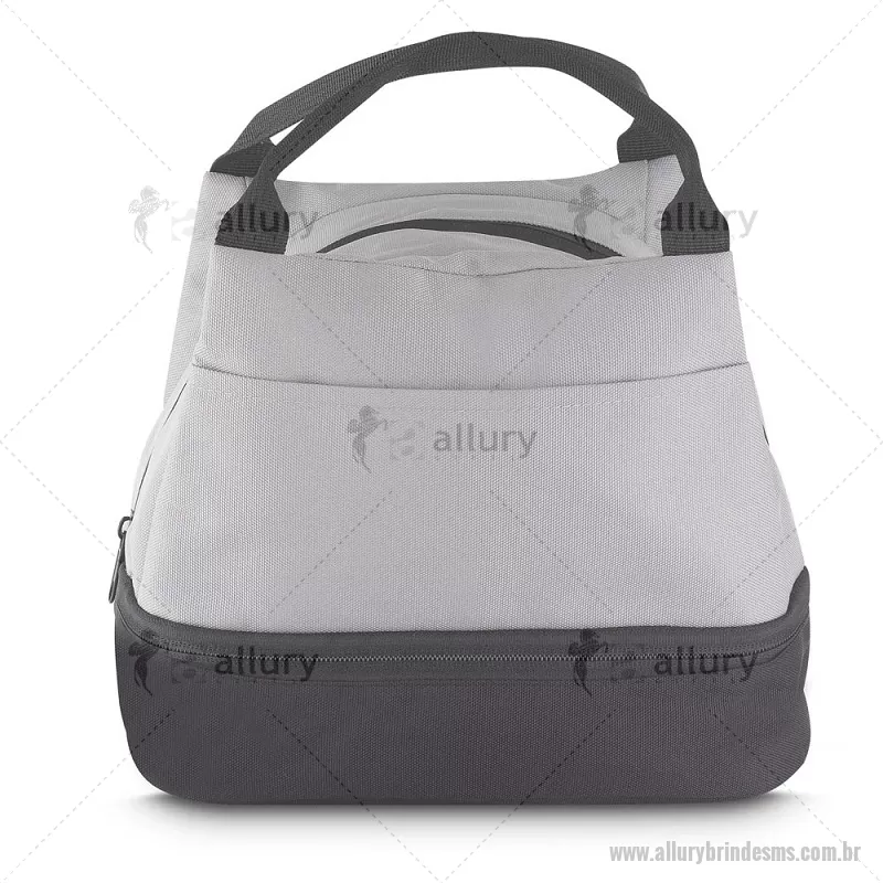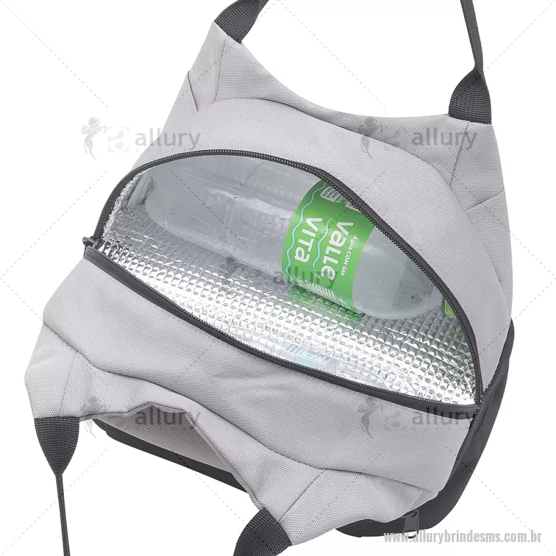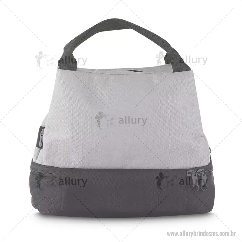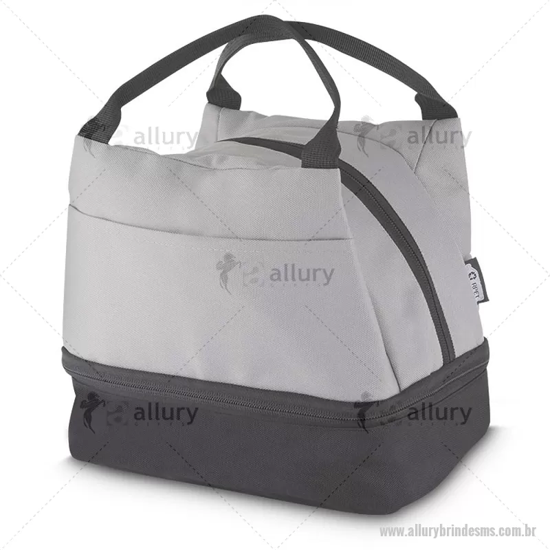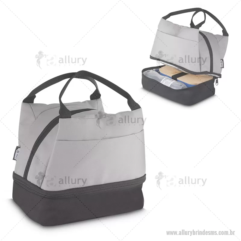 Bolsa térmica 7litros em tecido PET Reciclado com 2 compartimentos térmicos costurados, bolso frontal e alça de mão. Dimensão Produto: 21x24x15cm (AxLxP) Peso do Produto: 0,130kg Volume: 7L - - ALLMSBT094