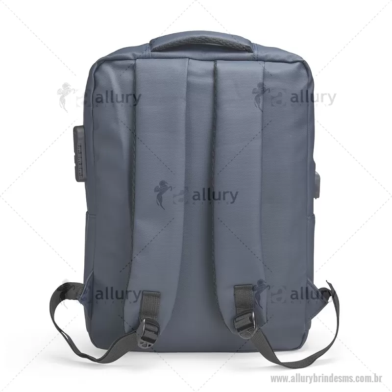 Mochila PU Impermeável Antifurto 22L Descrição: Proteção, segurança e praticidade em um só modelo! Esta mochila de 22 litros é confeccionada em poliuretano impermeável, garantindo resistência e proteção extra contra chuva e respingos. Seu compartimento principal inclui um espaço acolchoado para notebook de até 17 polegadas, enquanto o cadeado numérico TSA adiciona uma camada extra de segurança, tornando-a uma opção antifurto ideal para o dia a dia. Conta ainda com dois bolsos laterais para itens de fácil acesso e adaptador USB para carregar dispositivos com mais praticidade. O transporte é confortável e respirável, graças à alça de mão e às alças para as costas com revestimento espumado. Altura : 42 cm x Largura : 30 cm x Profundidade : 11 cm Peso aproximado (g): 616 - - ALLMSMC238