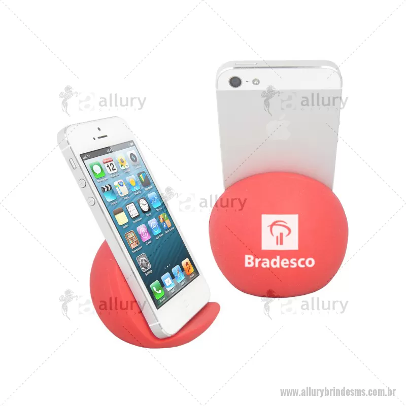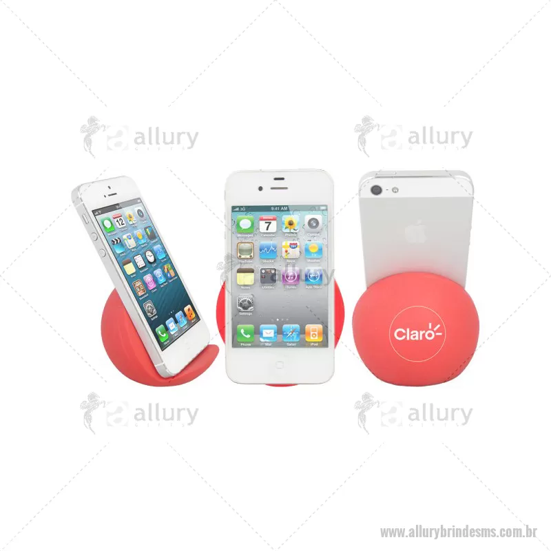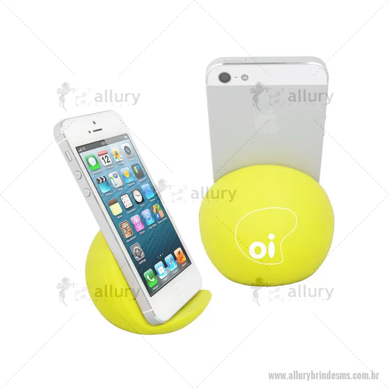 Porta celular / Apoio para smartphone de mesa Personalizado. Feito em vinil oca e disponível em várias cores. Material: Vinil - Especificação: Vinil (Policloreto de vinil) Disponível nas cores: vermelho, azul, azul escuro, azul claro, verde, verde escuro, verde claro, amarelo, laranja, preto, branco. Informação: Pantones específicos a partir de 1000 peças. Tipo de gravação: Tampografia Area de gravação: 40mm Ø Medida Produto: 65mm A x 75mm L x 70mm Peso: 45g Quantidade Mínima: 100 un - - ALLMSTEC065
